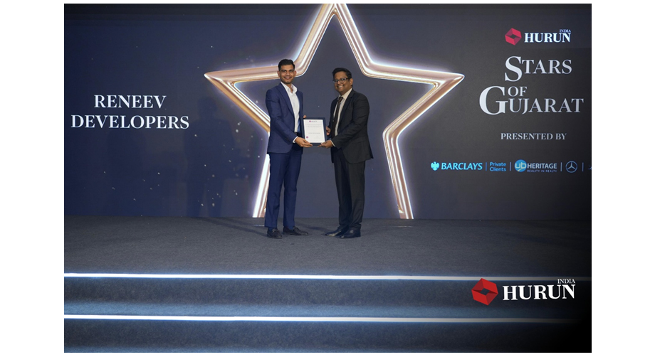 અમદાવાદ, 9 ડિસેમ્બર, 2025: 4 ડિસેમ્બરના રોજ અમદાવાદના લે મેરિડિયન ખાતે યોજાયેલા હુરુન ઈન્ડિયા એવોર્ડ્સ 2025માં રેનીવ ડેવલપર્સના સીઈઓ અને મેનેજિંગ ડિરેક્ટરને ગુજરાતના અર્થતંત્રમાં ઉત્કૃષ્ટ યોગદાન – સમુદાય-કેન્દ્રિત રિયલ એસ્ટેટ વિકાસમાં શ્રેષ્ઠતાથી સન્માનિત કરવામાં આવ્યા છે. આ સન્માન હુરુન ઈન્ડિયાના સ્થાપક અને મુખ્ય સંશોધક અનસ રહેમાન જુનૈદ દ્વારા આપવામાં આવ્યું હતું અને અમદાવાદ અને ગાંધીનગરમાં જવાબદાર, સુલભ અને ડિઝાઇન-આધારિત રિયલ એસ્ટેટ વિકાસ બનાવવા માટેના તેમના યોગદાનને માન્યતા આપે છે.